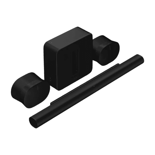 The Sonos Arc Ultra Cinema with Era 300 bundle is an advanced Dolby Atmos home-theater system engineered for listeners seeking a truly immersive, multidimensional audio experience. Anchored by the Sonos Arc Ultra soundbar—with its upward-firing drivers, enhanced beamforming, and advanced spatial processing—the system delivers deep bass, clear dialogue, and cinematic height effects that bring movies and music to life with remarkable realism. The addition of two Sonos Era 300 speakers as rear surrounds introduces true spatial-audio capability, as each Era 300 is equipped with six multi-directional drivers that project sound forward, backward, sideways, and upward to create a fully enveloping Dolby Atmos environment. This configuration enables precise rear height effects, wide atmospheric extension, and seamless wrapping of the soundstage around the listener, producing a premium cinema-level experience at home. Trueplay tuning analyzes the acoustics of the room and precisely calibrates each component, ensuring consistency and balance across all channels. Connectivity includes Wi-Fi, HDMI eARC, Apple AirPlay 2, and app-based control through the Sonos S2 platform, simplifying setup and customization. The bundle can be further expanded with a Sonos Sub for earth-shaking low frequencies. All components feature sleek modern designs that complement contemporary spaces, while wireless linking eliminates clutter and opens up flexible placement options. The Sonos Arc Ultra Cinema with Era 300 package delivers one of the most immersive and dynamic Dolby Atmos systems available in a wireless format, ideal for users who demand cinematic realism, spatial precision, and high-end audio performance.