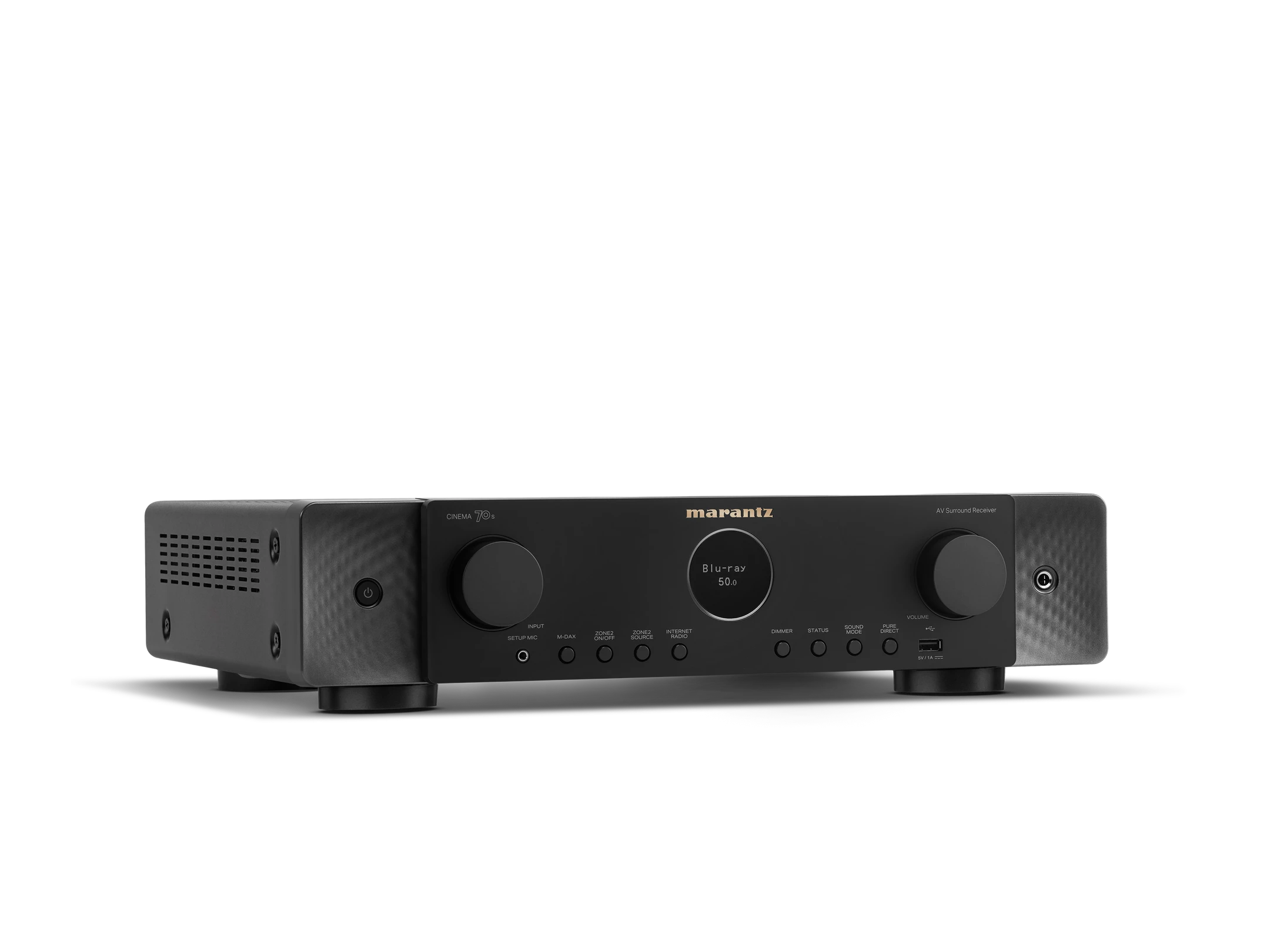The Marantz Cinema 70 stands out as a beautifully compact yet fully featured 7.2-channel AV receiver designed for smaller rooms and discreet installations. With its slimline chassis, it preserves all the audiovisual sophistication expected from Marantz: Dolby Atmos and DTS:X support, refined HDAM-based amplification, and advanced 8K HDMI connectivity. Despite its reduced height, the Cinema 70 delivers an impressive acoustic performance with precise imaging, smooth highs, and warm, musical midrange characteristic of the Marantz sound signature. HEOS multiroom streaming integrates seamlessly for wireless audio throughout the home, supporting high-resolution formats and major streaming platforms. The Cinema 70’s room correction system, Audyssey MultEQ, fine-tunes performance based on room characteristics, ensuring balanced sound even in challenging spaces. Its compact design makes it ideal for media consoles, apartments, or minimalist interiors where a full-size AVR may be impractical. Whether used for immersive cinema, gaming, or music, the Cinema 70 brings elegance and performance together—perfect for listeners who want high-quality surround sound without overwhelming their living space.