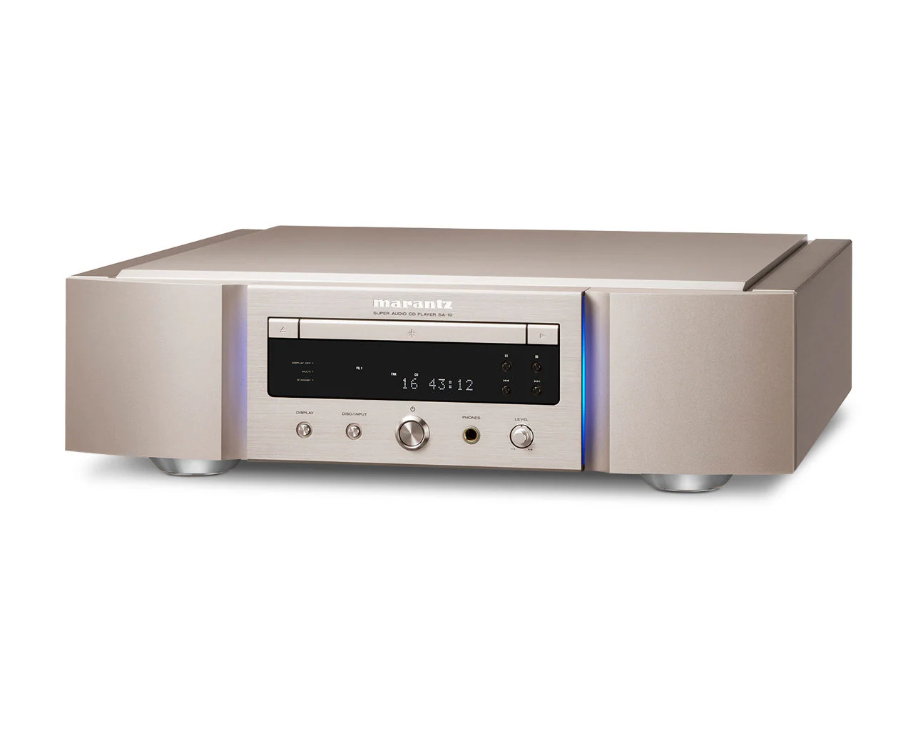 The Marantz SA-10 stands at the pinnacle of SACD and CD playback — a reference-class transport and DAC that combines heritage engineering with modern digital prowess. Featuring the specialized SACD-M3 mechanism built strictly for audio, and augmented by Marantz’s Musical Mastering DAC architecture, it delivers exceptional resolution, depth and sonic fidelity across SACD, CD, DVD-ROM (high-res audio) and digital streams via USB/coaxial/optical. Oversized power supply, balanced circuitry, HDAM-based analogue output stages and a rigid, copper-reinforced chassis combine to yield clean, noise-free playback, with expansive soundstaging, rich harmonic textures and dynamic control. Whether you’re playing classic discs or high-resolution file compilations, the SA-10 delivers a reference-level listening experience — ideal for audiophiles demanding precision, analogue warmth and future-proof flexibility.